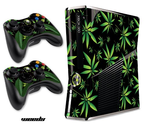 Designer Skin for XBOX 360 SLIM System & Remote Controllers -Weeds - Black